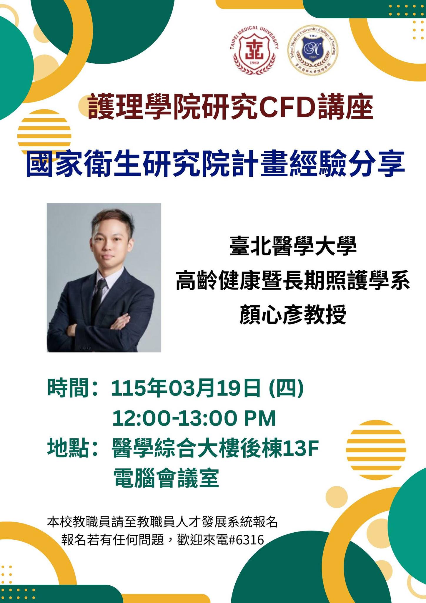 講者:臺北醫學大學高齡健康暨長期照護學系 顏心彥教授